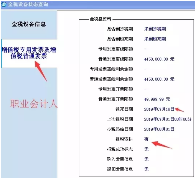 通过上图,我们看到锁死日期已经变成了8月16日,报税资料也变成了“无”,这就说明开票软件已经清卡成功。